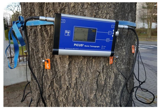 - Chomicz, E. Non-Invasive Diagnosis of the Condition of Historic Trees with the Use of Picus Tomographs. Conserv. Cour. 2010, 8, 29–32. Available online: https://www.nid.pl/upload/iblock/7f6/7f6ac9e8b82416efa9be341f0b30531e.pdf (accessed on 29 May 2022).