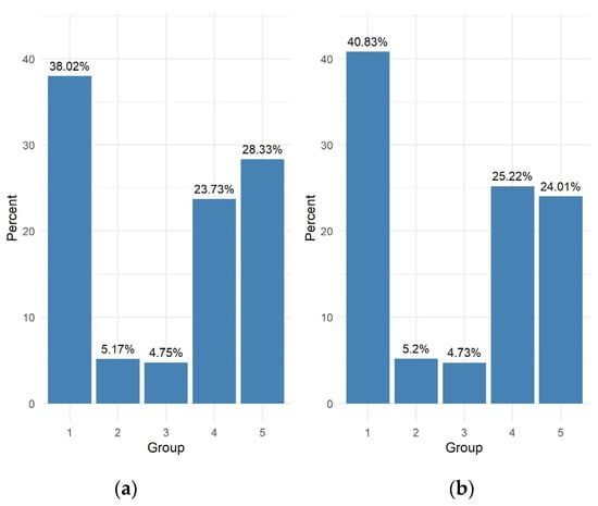 The results for the sixth question are summarized in Figure 8. The results of Mann–Whitney tests are in Table 15 and Table 16.