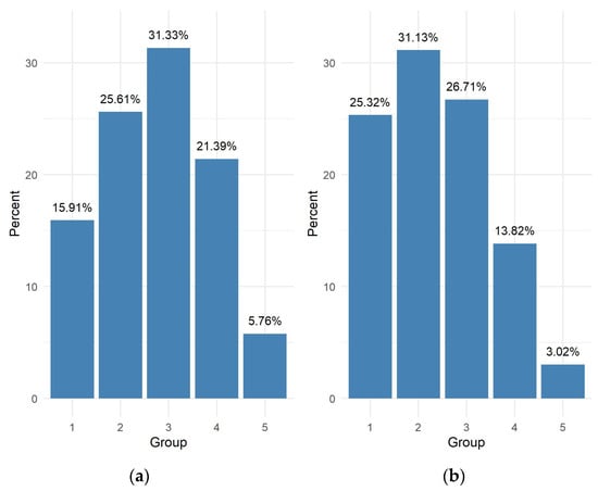 The results for the second question are summarized in Figure 4. The results of Mann–Whitney tests are in Table 7 and Table 8.