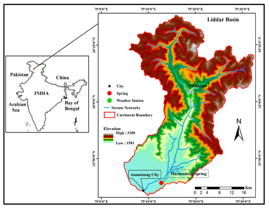 - Lone, S.A.; Jeelani, G.; Alam, A.; Bhat, M.S.; Farooqi, H. Effects of changing climate on the water resources of upper Jhelum basin (UJB), India. In Riverine Systems: Understanding the Hydrological, Hydrosocial and Hydroheritage Connections; Mukherjee, A., Ed.; Springer-Capital Publishing: New Delhi, India, 2021; pp. 139–154. [Google Scholar]