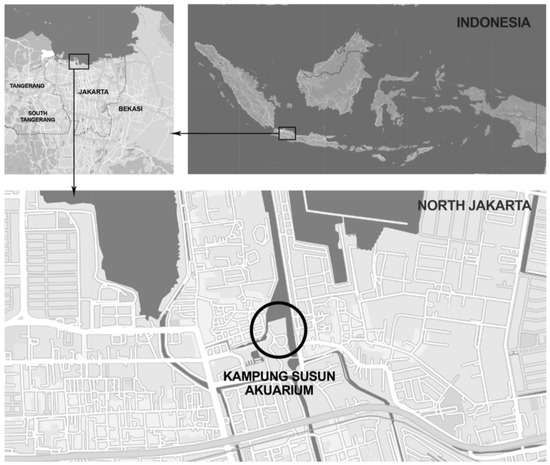 Due to the increasing population of Jakarta, the government could not provide adequate housing, which has led to numerous illegal houses being traded or rented without a permit and forming slum settlements [16]. Slum settlements are densely populated settlements located on land not by its spatial layout and built on state land or other people’s land, which is against the applicable laws and regulations [17,18]. Infrastructure and social facilities in slum settlements do not meet technical and health requirements, which can endanger the survival and livelihood of their residents [14,17,18].