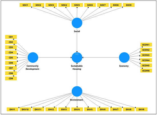 Sustainable housing promotes environmental preservation, economic development, and social equality to improve the quality of life in the community [21,22]. Sustainable housing also reduces huge urbanization problems that lead to population growth, deprivation, scarcity of sustainable energy, and climate change [23,24]. Sustainable housing is built and designed to meet several criteria: it must be affordable, healthy, safe, and comfortable, with easy access to energy, water, sanitation facilities, jobs, health, and education [25].