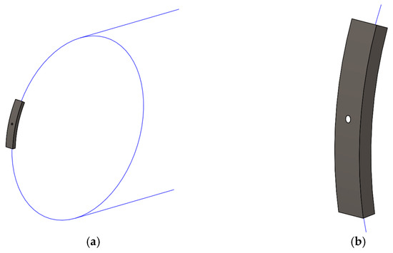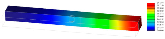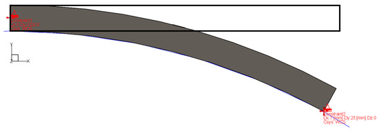 Figure 7, the segment of the conveyor belt with the implemented magnetic marker can be seen, along with a visualization of the deformation created after straightening the belt. From the calculated simulation results, it is clear that from the initial curving of the conveyor belt segment until its straightening, the deformation reached a value of 24.13 mm.