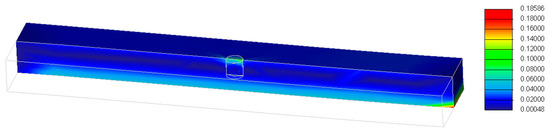 Figure 8. From the simulation results, it can be seen that higher values of the stresses can be observed in the upper part of the magnetic marker, which were caused by the contact pressure created after straightening the conveyor belt and by the creation of pressure on the magnet from the hyperelastic material of the belt in the specified position. The values of the corresponding contact pressure on the contact surfaces created between the magnet and the hyperelastic material are shown in