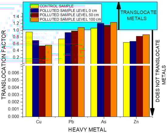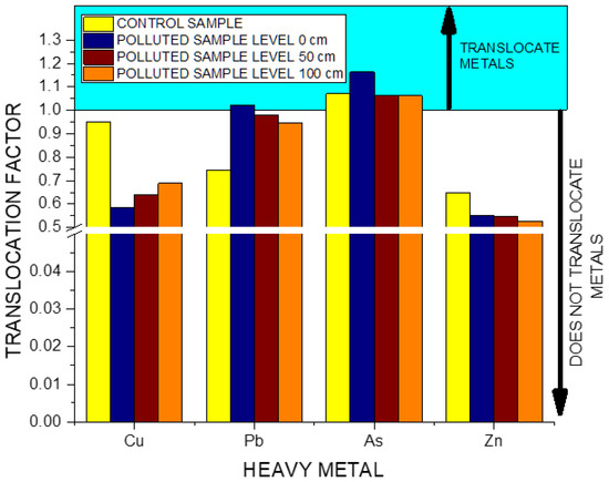 The translocation of As metal from the root to the aerial part of the plant is also significant in uncontaminated soil, with a translocation factor value for As of 1.07.