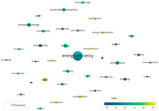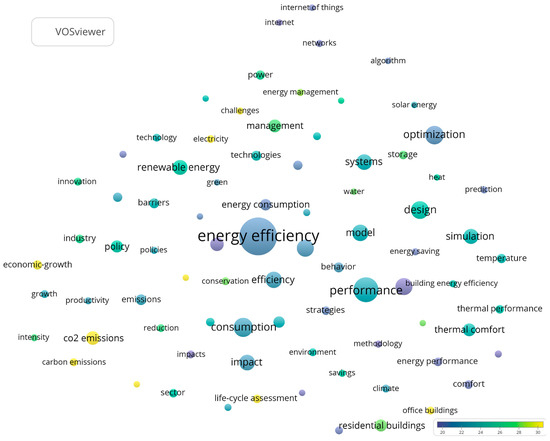 - “energy efficiency” with “performance”, “energy policy”, “renewable energy”, “performance”, “buildings” and “consumption”;