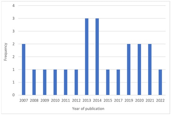 As shown in Figure 2, the research topic is relatively new, considering that all articles were published over the last fifteen years and about 70% of the publications (15 out of 22) were published in the last decade.