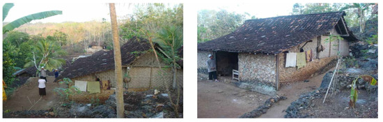 The agricultural land and farms involved in this research are large compared to the lowland farm size in Java. However, rice production per hectare per year is small since the Karst Mountains are unsuitable for rice cultivation; paddy plants need a lot of water, but the Karst areas have frequent droughts and water shortages. In addition, dryland farmers can only grow rice once a year during the rainy season. Farms that are suitable for cultivation are secondary crops such as corn, peanuts, and cassava [8]. Therefore, dryland farmers work in the off-farm labor market to maintain their living standards, such as traders, drivers, laborers, housemaids, tailors, public servants, teachers, masseuses, and art workers.