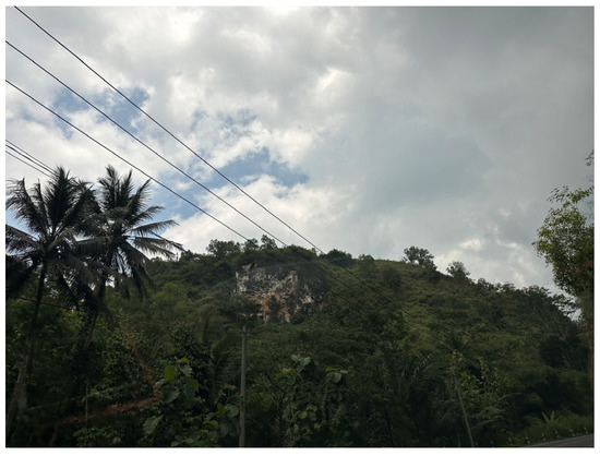 As a developing country, food insecurity in Indonesia occurs mainly in poor areas. Gunungkidul District, characterized by its arid terrain within the Karst Mountain region, stands as one of the poverty-stricken areas. Economic progress in the Karst Mountains of Gunungkidul, particularly in the realms of agriculture and animal husbandry, faces significant hindrances primarily due to the scarcity of surface water [6]. The unsuitability of agro-climate and geographical conditions, coupled with natural vulnerabilities, further compounds the challenges for engaging in agricultural economic activities. The meager income levels within the agricultural communities residing in the Karst Mountain area contribute significantly to the elevated levels of poverty experienced in the region [7,8]. Indonesian per capita income in 2022 is around IDR71 million per year or around IDR5.9 million per month [9], while per capita income in Gunungkidul in 2022 is IDR19.45 million per year or IDR1.6 million per month [10]. The precarious situation is amplified by the region’s unpredictable and erratic rainfall patterns, which are further exacerbated by the detrimental effects of extreme climate change. Consequently, Gunungkidul experiences a high prevalence of poverty, primarily attributed to the dominance of dryland and Karst Mountains in its geographical landscape that depicted in Figure 1 and Figure 2.