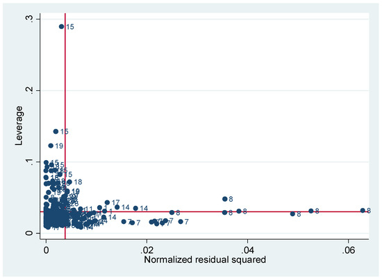 To identify the statistical properties of the panel data and find the possible outliers, we plotted a graph showing the leverage versus the squared residuals for the current sample (Figure 3).