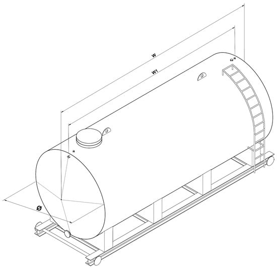 Horizontal cylindrical tank with a cone end on both sides.