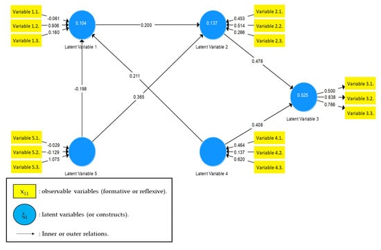 - The values that accompany the arrows between constructs are called path coefficients. They represent the relevance of the relationship between the variables.