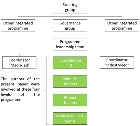 The authors had the following roles within the programme: two of the authors formed part of both the design team (one of whom was the leader of the design team, and one of whom was also a module leader), and one of the authors was a science delivery team lead. Please see Section 3.3 for details about NZBIDA’s management and governance structures, and where these roles fit into that structure.