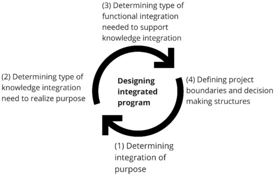 Besides epistemic integration, several other forms of integration can be distinguished [7], such as normative and functional integration [5,10]. By normative integration, we refer to the integration of purpose, which is realised when participants share a common aim or vision. Functional integration refers to the integration of workstreams. This includes integration of vertical workstreams (project, programme, supra-programme), as well as integration of horizontal streams (across different projects within the programme). In this case, integration is successful when researchers cooperate in a coordinated manner across the programme. The type of integration that funding agencies have in mind when they request proposals for integrated research programmes is not always well-specified. However, implicitly at least, often all three of the above-mentioned forms of integration are assumed to some degree.
