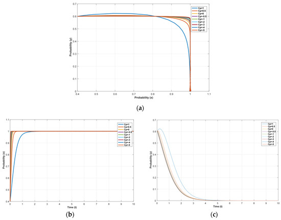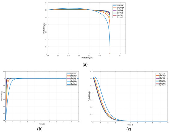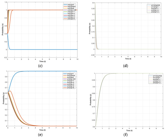 Similar to the method of discriminating unstable points, saddle points, center points, and stable points in Section 4.1, the stability of each point can be discriminated by referring to the determinant of the Table A3 Jacobian matrix and the sign of the trace in Appendix C. We will discriminate the stability points according to the real situation in the simulation (see Section 5.2).