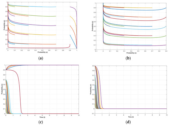 x(0), y(0) are the time-varying states (x(t), y(t)) in the system at t = 0. Moreover, we assume that the initial probabilities of x,y are x0 and y0, x0 = x(0) + x*, and y0 = y(0) + y*.