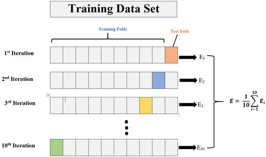 It is important to determine the optimal combination of hyperparameters in machine-learning models when attempting to improve the predictability of the model. Hyperparameters determine how well the model can learn. A tuning technique known as “grid search” was used in the current study, which searched exhaustively for all optimum values for the user-specified hyperparameter combinations using this technique. Additionally, to overcome the problem of overfitting, standard k-fold cross-validation was used as part of the process. In order to carry out the k-fold cross-validation, the procedure outlined below must be followed []: