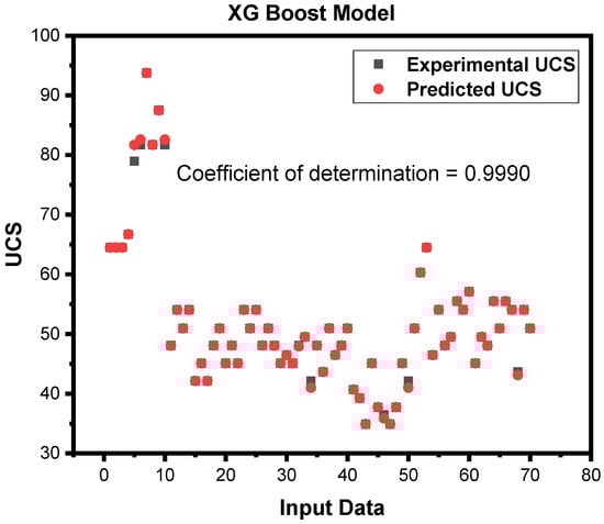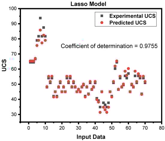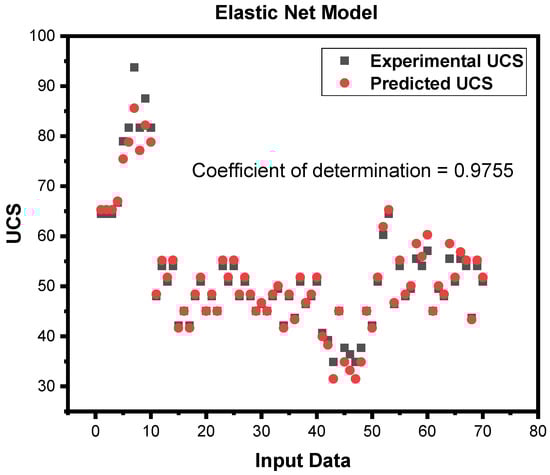 The above analysis shows the performance of various machine-learning models when predicting the UCS of rock samples, as presented in Section 3. The ANN model achieved an impressive coefficient of determination (R2) of 0.9995, indicating a strong correlation between predicted and measured UCS values. This suggests that the ANN model can be used to predict UCS values accurately. Among the other models, the Random Forest Regression (RFR) performed well with an R2 value of 0.9949. This suggests that RFR can also be used as an alternative method for predicting UCS values. The XG Boost algorithm also performed well, with an R2 value of 0.9990, which is similar to the ANN model. The Ridge regression, Elastic Net, and Lasso regression models also showed good performance with R2 values ranging from 0.9887 to 0.9886. However, their performance was slightly lower than that of the ANN, XG Boost, SVM, and RFR models. Overall, the analysis suggests that the ANN model, followed by XG Boost, SVM, and RFR are the best models for predicting UCS values, while Ridge regression, Elastic Net, and Lasso regression are also good alternatives. The SVM model may not be the best option for predicting UCS values. This study considers a small data set due to limited resources. In future studies, the authors will use the application of infrared radiation (IR) technology and AI together to avoid such a large parameter determination in the field as used in this study training. The IR and AI together will make the prediction more reliable and applicable. Moreover, in the future, the given 70 sample data set can be increased using the harmony search optimization algorithm [].