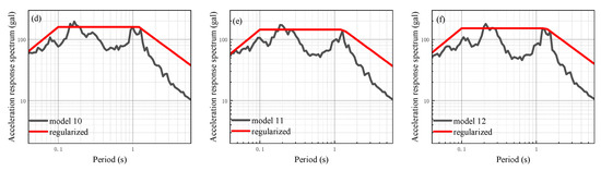 The regularized response spectrum of the sites [39] is obtained following the format of the regularized response spectrum specified in the Code [26], which is presented in Figure 8, Figure 9, Figure 10, Figure 11, Figure 12 and Figure 13. Additionally, the characteristic period of the response spectrum of each model is given in Table 7.