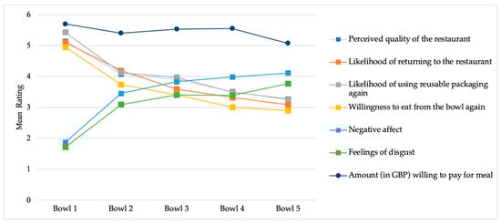 | Willingness to eat from the bowl again | 4.95 | 1.31 | 3.74 | 1.74 | 3.41 | 1.77 | 3.00 | 1.82 | 2.88 | 1.79 |
