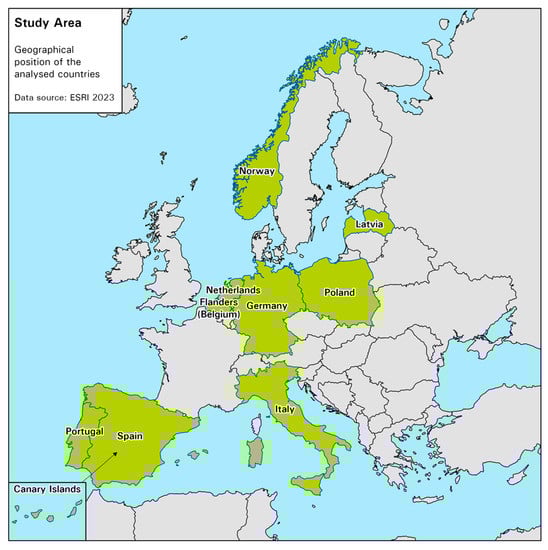 Geographical position of the analysed countries marked green (Source: Authors’ elaboration).