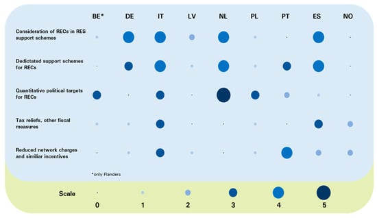 - Krug, M.; Alonso, I.; Anfinson, K.; Azevedo, I.; Del Bufalo, N.; Di Nucci, M.R.; Dyląg, A.; Gatta, V.; Massa, G.; Meynaerts, E.; et al. Comparative Assessment of Enabling Frameworks for RECs and Support Scheme Designs. Zenodo 2022, 1–257. [Google Scholar] [CrossRef]