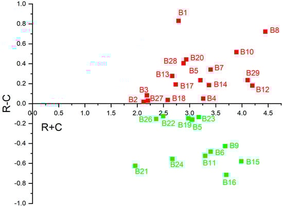 Create a cause-and-effect diagram based on ri + ci and ri − ci. The dataset (ri + ci, ri − ci) can be mapped to create a cause-and-effect diagram. The diagram creation technique also helps to visualize the complicated interrelationships between components.