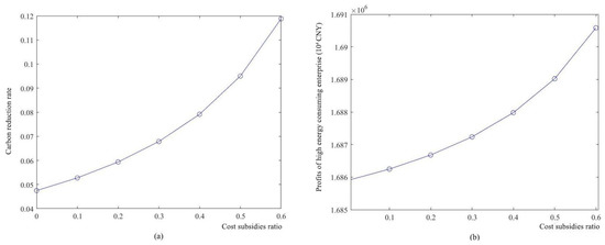 , the unit carbon emission reduction level will rise with the increase of the cost subsidy coefficient of low-carbon science and technology investment, and the profits of high energy-consuming enterprises will rise accordingly.