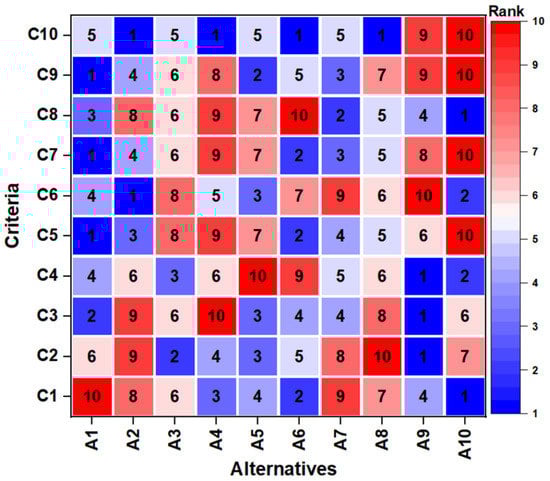 | Alternatives | C1 | C2 | C3 | C4 | C5 | C6 | C7 | C8 | C9 | C10 |
