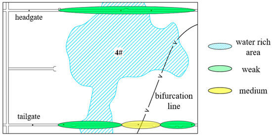 Division diagram of rock burst risk areas around no. 4 water-rich area before drainage.