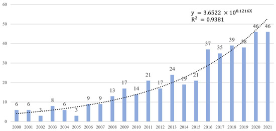 Year-wise publication of bibliometric papers between 2000 and 2021.