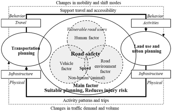 Overview of road safety issues related to transportation and land use planning (Source: Authors).