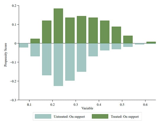 | Variable | Before/After Matching | Treatment Group | Control Group | Bias Ratio (%) | Bias Reduction Ratio (%) | t | p > |t| |