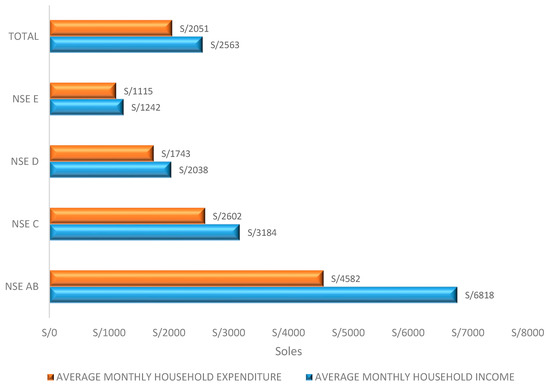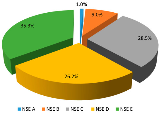 Distribution of Socioeconomic Levels (NSE) among households in Peru in 2021. The data presented in the figure has been adapted from APEIM [8].