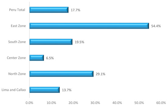 APEIM [18] provides insight into the distribution of socioeconomic levels (NSE) as a measure of development. Using the results from the National Household Survey (ENAHO) 2020, APEIM’s analysis for 2021 (depicted in Figure 1) reveals the distribution of NSE. NSE A and B households account for only 10%, while NSE C, D, and E represent 28.5%, 26.2%, and 35.3%, respectively. Several regions in the country have a higher concentration of households in the lowest NSE, surpassing the national average. These regions highlight the need for increased government support to address or mitigate the social housing problem.