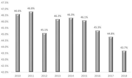 Proportion of urban population living in slums, informal settlements, or inadequate housing in Peru. Source: Adapted from National Institute of Statistics and Informatics [51].