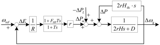 From Equations (16) and (17), it can be seen that the increased virtual inertia corresponds to the superposition of the two processes described above, thus adding a transfer function link to the traditional grid frequency response model: