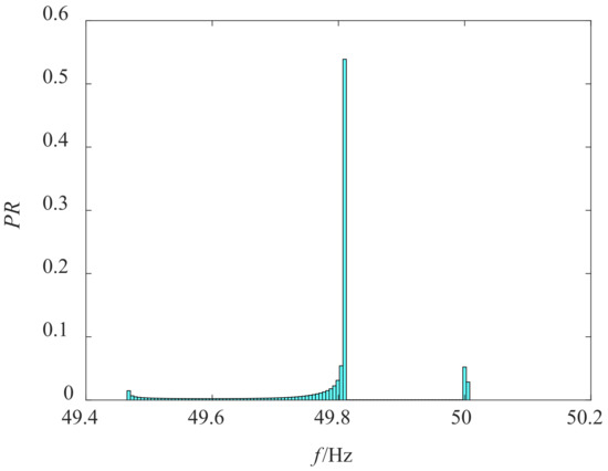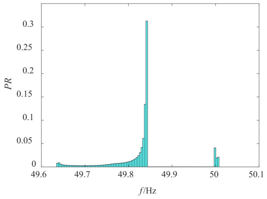 The simulation comparison results indicate that the system frequency drops when the load is put in at t = 4 s. When the FR control strategy is not applied, the lowest value of frequency drop is 49.466 Hz and the final steady-state value of frequency is 49.812 Hz; after the FR control strategy is applied, the lowest value of frequency drop is 49.637 Hz and the final steady-state value of frequency is 49.841 Hz. Compared to before frequency regulation, the system reaches stability at approximately t = 45 s after 41 s of dynamic adjustment, with an increase in the minimum value of frequency of approximately 0.171 Hz, a reduction in the maximum variation deviation of frequency, and an increase in the final steady-state value of frequency. The same can be seen from the normal distribution of the system frequency, when the proportion of high frequencies in the system increases significantly after the frequency control.