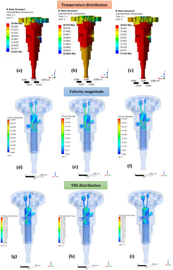 The influence of temperature and viscosity parameters on the fuel can affect the fluid flow performance and the heat distribution rate in a material. In addition, fluid velocity can affect the heat distribution rate for the barrel and plunger. Figure 9a–c gives information regarding imported body temperature from ANSYS-Fluent® coupled with ANSYS-Static Structural® using a thermal fluid–solid interaction method.