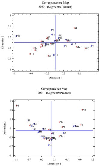 Product and segment are significantly associated in the two selected periods before and during the COVID-19 pandemic.