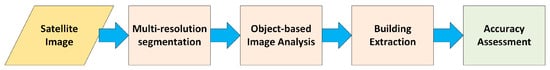 Workflow of object-based image analysis for building extraction.