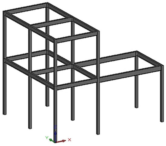 The structural designers can directly import components from the component library to complete the rapid modeling of a three-dimensional structural model of rural buildings in the BIMBase platform according to the previous design experience. The components are organized into model folders in a specific coding sequence and stored in the component library folders. These folders are then packaged and imported into the component library management platform of BIMBase. Designers can directly access these component models on the platform, which greatly improves the modeling efficiency of the model. It should be noted that each component in the component library is indexed by a specific coding sequence and stores its geometric and material information through Python code. Therefore, the three-dimensional structural model can be equivalent to a Python code containing a set of component information. Once the structural modeling of the rural buildings is completed, the model can be further refined by specifying the behavior and physical characteristics of the structure. The behavioral characteristics include information about the loadings (e.g., dead load, live load and wind load) acting on the component, while the physical characteristics include end-support information (e.g., fixed, pinned and roller end-support). An example of a structural frame model built by the component library is given in Figure 5.