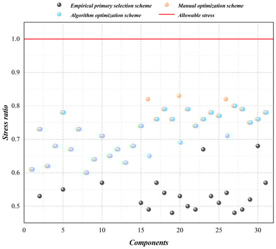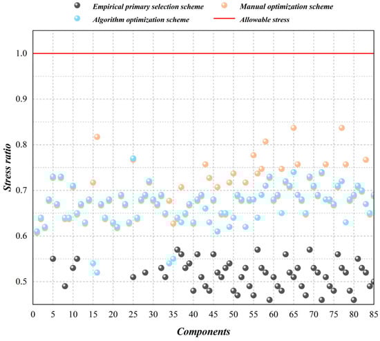 (4) Repeat (2) and (3) until all components meet the stress constraints or the section size of all components is set to the maximum section in the component library.