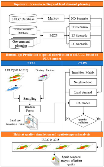 - Wu, J.; Luo, J.; Zhang, H.; Qin, S.; Yu, M. Projections of land use change and habitat quality assessment by coupling climate change and development patterns. Sci. Total Environ. 2022, 847, 157491. [Google Scholar] [CrossRef]