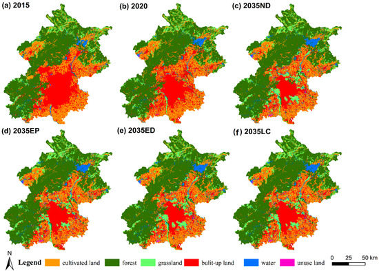 The area of LULC in Beijing under different scenarios in the future.