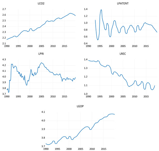 | LCO2 | LPATENT | LPRI | LGDP | LREC | |