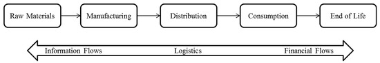 Supply chain refers to the supply and demand of goods and services across various segments in the longitudinal relationship between the upstream suppliers and downstream buyers. Previous studies [17,36] have defined the generic framework of the contents of the supply chain for ITRM, as in Figure 3.