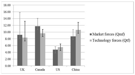 For industry roadmaps, market and technology forces are complicated and involved in larger contexts. Market forces mean the “aggregate influence of the buyers and sellers on prices and quantities of goods and services offered in a market” [48]. Technology forces are the influences of technology developments on customers, businesses, and society [49]. As stated by Phaal et al. [8], the technology force links the market and technology.