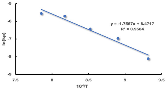 According to Equation (2), the linear relationship between the corrosion rate and temperature T can be obtained by plotting the corrosion rate data against the corresponding temperature values and fitting a curve to the data points, as shown in Figure 13.