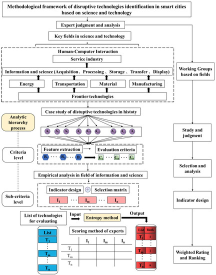 Each of these steps is discussed in detail below (Figure 1). After sixteen subjects of disruptive technologies in seven fields are selected based on the proposed framework, the steps of a case study in the information and science of smart cities are described and are equally applicable to the design system of any other field. However, the evaluation indicators for the field of information and science are not suitable for others.